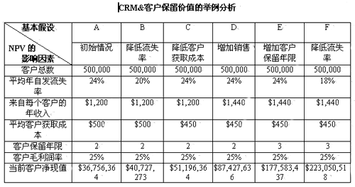 顯然,流失率是影響NPV的最重要因素,良好的客戶關(guān)系或客戶保留將創(chuàng)造更大的利潤。從短期和長期來說,"以客戶保留為中心"是回報(bào)最豐厚的CRM活動(dòng)。