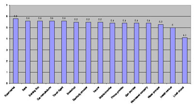 目前全球絕大多數(shù)的客戶體驗(yàn)都極為冷漠。我對歐洲所作的調(diào)研顯示人們對所有行業(yè)企業(yè)的情感依賴性相當(dāng)接近(2)。500位消費(fèi)者評出了自己的最佳客戶體驗(yàn),該調(diào)研橫跨多個行業(yè)。他們對供應(yīng)商作了如下評價(jià)(等級從0-7):