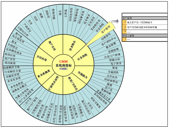 CMM體系中的標(biāo)準(zhǔn)并非在每一次評(píng)估中都需要用的,它實(shí)際上是一個(gè)滿足大部分CRM評(píng)估的標(biāo)準(zhǔn)的合集。所以應(yīng)用者首先要自己或者借助評(píng)估顧問(wèn)來(lái)選擇CMM指標(biāo)范圍,確定哪些指標(biāo)參與此次評(píng)估。
