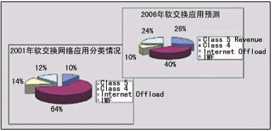 軟交換的一個(gè)重要功能就是將Internet撥號(hào)業(yè)務(wù)從現(xiàn)有5類交換機(jī)上旁路下來。傳統(tǒng)5類交換機(jī)不適合處理大量的長時(shí)間Internet呼叫業(yè)務(wù),如果能在傳統(tǒng)匯接網(wǎng)絡(luò)的邊緣設(shè)置較便宜的軟交換機(jī),把Internet撥號(hào)業(yè)務(wù)在進(jìn)入5類交換機(jī)之前直接交換到IP網(wǎng)上,而話音業(yè)務(wù)不受影響,這樣就會(huì)極大減輕傳統(tǒng)交換機(jī)的負(fù)擔(dān)。傳統(tǒng)運(yùn)營公司就不會(huì)抱怨Internet業(yè)務(wù)對(duì)網(wǎng)絡(luò)帶來的壓力,競爭的本地運(yùn)營公司、ISP等新興運(yùn)營公司也不用抱怨向電信運(yùn)營公司支付昂貴的交換機(jī)使用費(fèi)。