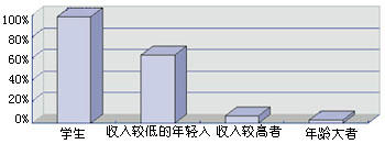 消費者根據(jù)文化程度和職業(yè)的不同,對IP電話的認(rèn)可也不一樣,其中,學(xué)生和年輕的上班族的認(rèn)知率是最高的,這和他們的收入以及較易接受新事物有關(guān)。學(xué)生的收入較低,年輕的上班族中不少人的收入不高,同時他們也是長途電話的主要使用者之一。對于那些高收入的消費者來說,IP電話所節(jié)省的費用必要性不大,而很多話費可以報銷,IP電話使用又不方便,因此他們一般不使用IP電話。而對于年齡較大的消費者來說,IP電話的不方便使用是最主要的原因之一。圖5是個人消費者對IP電話的使用程度比較。