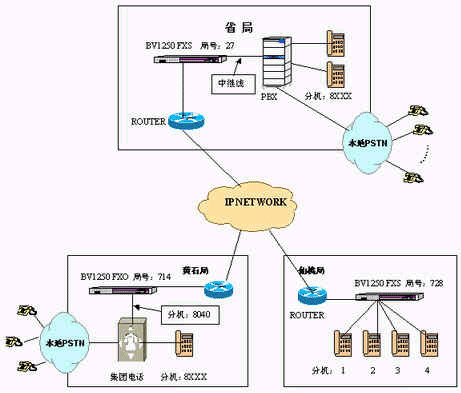 黃石局…呼叫各分支局:本地接入BV1250/FXO的分機(jī)號碼 + 對方局號+對方分機(jī)號碼。