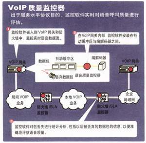 IP語音呼叫質(zhì)量無法用常規(guī)方式監(jiān)控。傳統(tǒng)的網(wǎng)絡(luò)監(jiān)控器的關(guān)注點(diǎn)是孤立的傳輸流統(tǒng)計(jì)數(shù)據(jù),而非固有的質(zhì)量、語音清晰度或最終用戶的感覺。這類傳統(tǒng)的工具提供有關(guān)鏈路吞吐量和利用率、抖動、延時(shí)、錯(cuò)誤、包丟失總數(shù)或丟包率的孤立的數(shù)據(jù)。然而,這些統(tǒng)計(jì)數(shù)據(jù)沒有揭示呼叫質(zhì)量,因?yàn)樗鼈兒鲆暳蒜Оl(fā)丟失,不理會抖動緩沖區(qū)造成的包丟棄,沒有考慮網(wǎng)絡(luò)故障對用戶感覺造成的影響。
