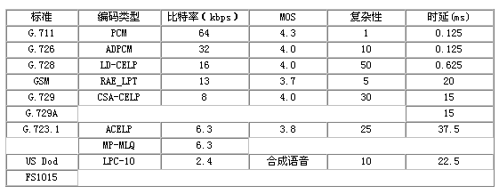 標準 編碼類型 比特率 MOS 復(fù)雜性 時延 (kbps) (ms) G.711 PCM 64 4.3 1 0.125 G.726 ADPCM