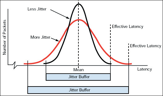 網(wǎng)絡(luò)上的抖動(dòng)出現(xiàn)50到200毫秒的標(biāo)準(zhǔn)偏差并非罕見(jiàn)。相比之下,企業(yè)LAN卻很少出現(xiàn)超過(guò)幾毫秒的抖動(dòng)。