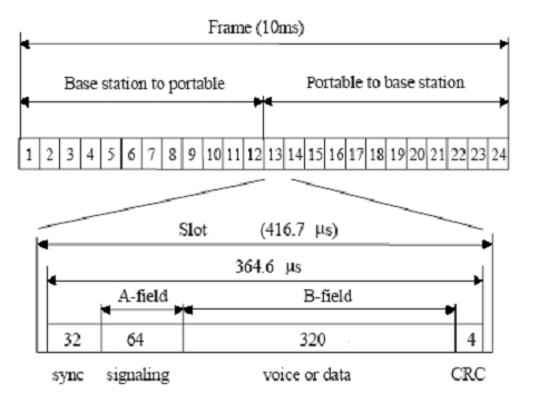 數(shù)字增強型無線通訊標準(DECT)是整合數(shù)據(jù)應用的第一種無繩電話標準之一。為了保證市場競爭力,DECT著力于創(chuàng)建一個可互操作的平臺,該平臺能夠同時為住宅及商業(yè)市場提供話音及數(shù)據(jù)應用。根據(jù)這一策略,DECT正為固定網(wǎng)絡運營商提供一系列增強其競爭力的基礎設施。圖1:DECT中的24時隙