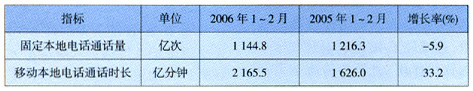 表1 2006年1-2月固定市話與移動(dòng)市話通話量