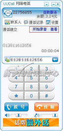 UUcall是一個僅1MB的綠色軟件,單純提供電話的功能,支持PC-PC、PC-PHONE。軟件支持熱鍵操作,還提供一個獨特的功能-錄音,方面用戶使用。