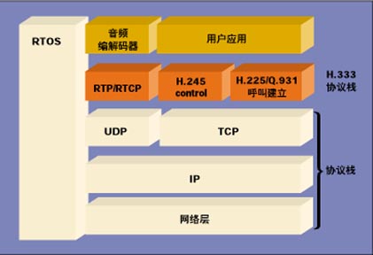 Q.931/H.225流程包括呼叫建立和拆除。圖1表示一個完整的H.323協(xié)議棧的實(shí)現(xiàn)。值得指出的是,該實(shí)現(xiàn)依賴于網(wǎng)絡(luò)協(xié)議棧和實(shí)時操作系統(tǒng)(RTOS)。多數(shù)應(yīng)用系統(tǒng)需要RTOS以便同時處理多個流程和/或呼叫。