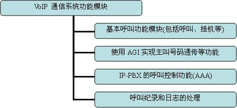 如果是基于純軟件的實(shí)現(xiàn)方案,Asterisk是構(gòu)建VoIP項(xiàng)目的核心,系統(tǒng)中所有與用戶呼叫有關(guān)的功能和管理都通過它來實(shí)現(xiàn),包括VoIP各種協(xié)議的互通和配置,以及各種呼叫設(shè)備的配置文件。本文檔所討論的VoIP通信系統(tǒng)基本功能如圖3-2所示,一般的Asterisk的任務(wù)包括了兩方面,一是與呼叫有關(guān)的,包括基本呼叫處理、主叫號(hào)碼透?jìng)、呼叫紀(jì)錄和日志生成等,二是與呼叫控制有關(guān),即終端用戶的認(rèn)證計(jì)費(fèi)功能。