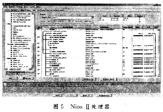 首先使用SOPC Builder系統工具構建了一個NiosCPU作為整個系統的處理器核,它的Avalon總線對其他接口及控制器進行指令和數據傳輸,包括:由內部定時器控制的Avalon總線;為Nios
