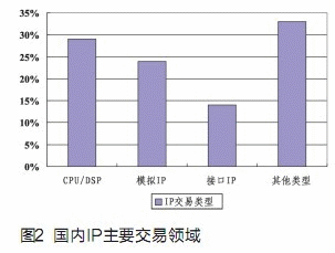 Express等);三是模擬IP(如PLL,ADC等)。這三類IP需求占到總需求的一半多。而其他的交易類型如標(biāo)準的內(nèi)存模塊,以及一些面向特殊應(yīng)用的IP,則占據(jù)國內(nèi)需求的三分之一(見圖2)。