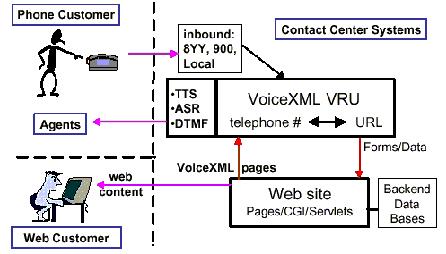 新的語(yǔ)音技術(shù)可以創(chuàng)建出對(duì)話驅(qū)動(dòng)的應(yīng)用程序,例如語(yǔ)音識(shí)別技術(shù)(ASR),語(yǔ)音合成技術(shù)(TTS)以及記錄和回放數(shù)字化語(yǔ)音在 PC 和服務(wù)器(分發(fā)到客戶端設(shè)備)上 。Voice XML 提供了一種與技術(shù)無(wú)關(guān)的語(yǔ)言,可以用在語(yǔ)音應(yīng)用程序。這些應(yīng)用程序?qū)⒑蠖颂幚碚Z(yǔ)音的服務(wù)和處理機(jī)制與前端基于 Voice XML 的表示層分離開。例如,一個(gè)精心設(shè)計(jì)的 Web 站點(diǎn)可以輕而易舉地支持語(yǔ)音驅(qū)動(dòng)的瀏覽器(比如您很可能在移動(dòng)電話上會(huì)使用的那種),同時(shí)它有能支持其它的瀏覽器(比如一個(gè) WAP 瀏覽器或 HTML 瀏覽器)。當(dāng)接受到來(lái)自瀏覽器的最初請(qǐng)求時(shí),服務(wù)器將監(jiān)測(cè)出瀏覽器的類型。如果瀏覽器被確認(rèn)為一個(gè)語(yǔ)音瀏覽器,服務(wù)器將返回對(duì)應(yīng)的 Voice XML 頁(yè)面。