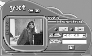 視頻目錄服務(wù)器的IP地址已在主界面中顯示,如“202.103.190.60”。你只需點(diǎn)擊前面有兩個(gè)人頭像的“連接目錄服務(wù)器”按鈕,就可以登錄視頻目錄服務(wù)器。這時(shí)你可看到所有登錄者的信息。如果你想同哪位朋友聊天,你可用鼠標(biāo)雙擊你想與之聊天的朋友的信息,WebMeeting會(huì)馬上為你進(jìn)行聯(lián)系,接通后響起一陣電話(huà)鈴聲并會(huì)彈出一個(gè)名為“遠(yuǎn)程視頻”的窗口,對(duì)方的視頻畫(huà)面會(huì)顯示在其中。用它來(lái)跟千里之外的朋友進(jìn)行溝通真是方便,筆者就嘗試用它來(lái)進(jìn)行QQ朋友“相面”;舉行遠(yuǎn)程朋友聚會(huì);親身示范教別人學(xué)習(xí)電腦使用及解決電腦故障;了解異地商品優(yōu)劣;欣賞異地風(fēng)光(將攝像頭對(duì)準(zhǔn)大街);甚至還可來(lái)個(gè)重要事件現(xiàn)場(chǎng)直播等等。