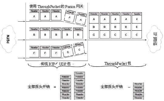 Clarent ThroughPacket本質上是一種中繼技術,它把來自多個通道的數(shù)據(jù)連接成一個單獨的包。這明顯地減少了網關每時每刻都要傳送的包數(shù)量。由于發(fā)送更少的包穿過網絡,Clarent