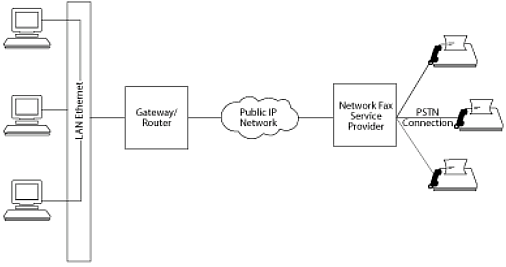 目前,許多的Internet傳真服務僅能提供存儲轉(zhuǎn)發(fā)傳真,這種服務在用戶電腦終端和世界其他地方的傳真網(wǎng)關連接在一起。這是一種傳統(tǒng)LAN傳真技術的擴展,客戶端的傳真網(wǎng)關允許客戶端PC或者工作站創(chuàng)建文檔并通過一個通用網(wǎng)關發(fā)送傳真。