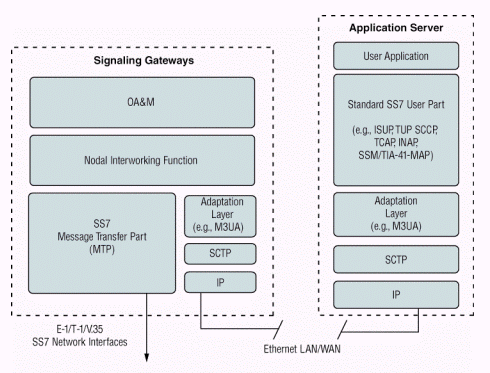 SCTP和應(yīng)用層軟件,如MTP3用戶適配層 (M3UA),以及標準的七號信令用戶端軟件,如ISUP、移動應(yīng)用部分 (MAP)、或者智能網(wǎng)應(yīng)用部分