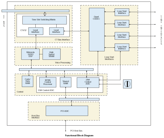 信令數(shù)據(jù)(摘機/掛機、振鈴、呼叫方ID等等)傳送到板內控制處理器,并且通過雙端口共享RAM和主機PCI總線發(fā)送到應用程序。