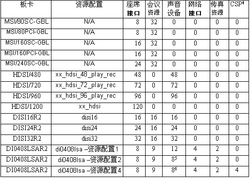 2.HDSI/1200不提供相關(guān)的聲音資源。D40408LSAR2為專用語音資源或路由聲音資源提供資源配置。