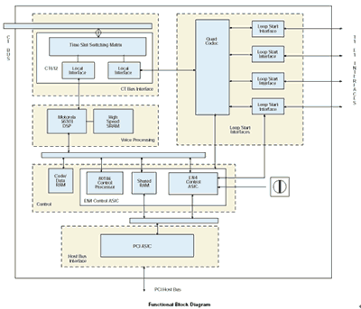 可下載的Spring Ware固件算法,由板內(nèi)DSP執(zhí)行,可以提供可變的24Kb/s到32Kb/s的ADPCM編碼方式和48Kb/s到64Kb/s的A率或u率PCM編碼方式,采樣速率和編碼方法可以分通道選擇。應(yīng)用程序根據(jù)需要可以動態(tài)地改變采樣速率和編碼方式,以達(dá)到最優(yōu)的數(shù)據(jù)存儲和語音質(zhì)量。其他的編碼算法(象GSM和G..726)可以在支持VPIM標(biāo)準(zhǔn)的應(yīng)用中使用。