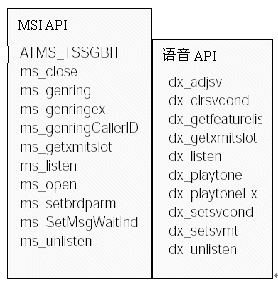 。。MSI板不包括板內(nèi)語(yǔ)音資源。由于這個(gè)原因,MSI局站的設(shè)置不提供相關(guān)的語(yǔ)音資源。需要語(yǔ)音資源的應(yīng)用必須在系統(tǒng)配置中添加可路由語(yǔ)音資源的板卡,并且使用這些板卡上的可路由語(yǔ)音資源。使用MSI站設(shè)置的應(yīng)用只要需要語(yǔ)音操作就必須向局站設(shè)置提供一個(gè)語(yǔ)音資源。