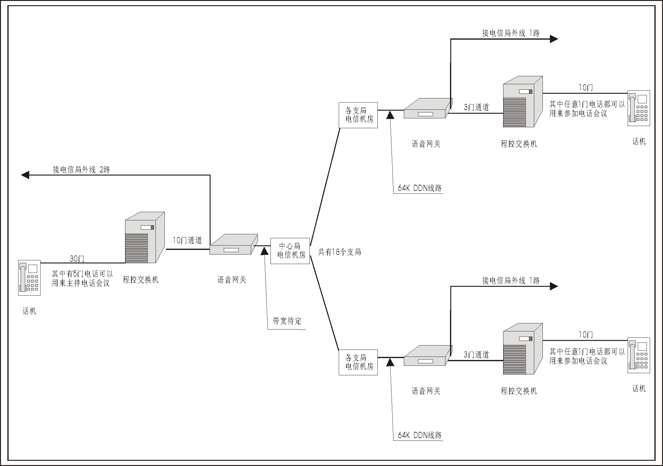 尋求合作電話會議網(wǎng)絡(luò)建設(shè) 。。本公司是一家工程公司,現(xiàn)要為某單位建設(shè)一電話會議網(wǎng)絡(luò), 。。敬請?zhí)峁┮环莘桨,包括系統(tǒng)的可行性論證、構(gòu)成及原理、設(shè)備功能說明、設(shè)備清單及報(bào)價(jià)。 。。若有更好的解決方案,我們歡迎合作。 ![]() (點(diǎn)擊放大) |
